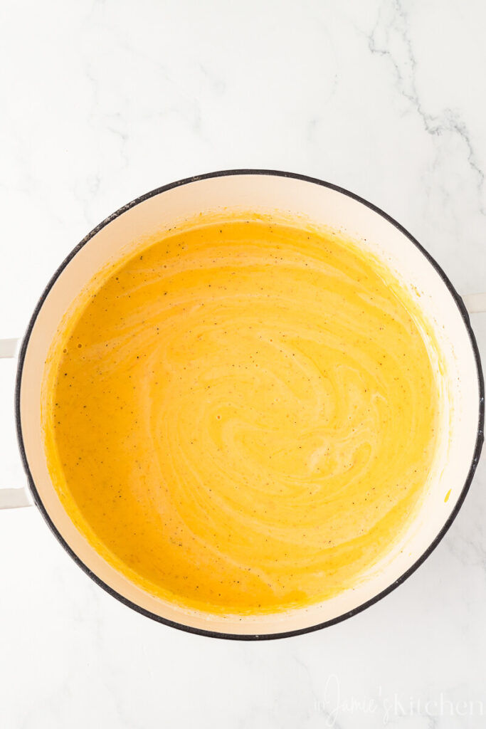 - In the same pot melt the butter over medium heat and then add the flour to make a roux. Cook for about one minute until smooth